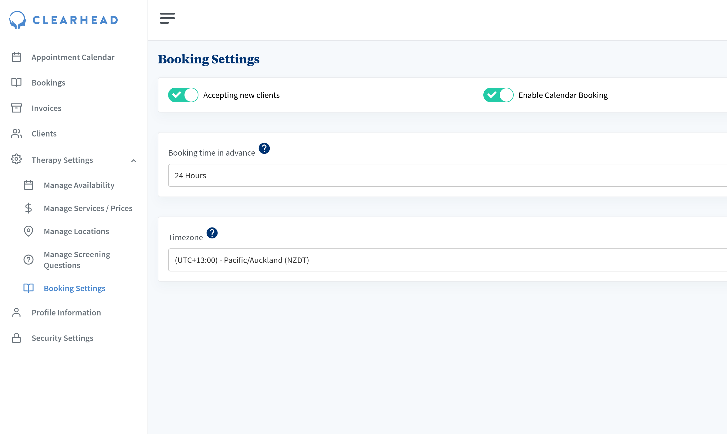 - Head to Therapy Settings and click Booking Settings.