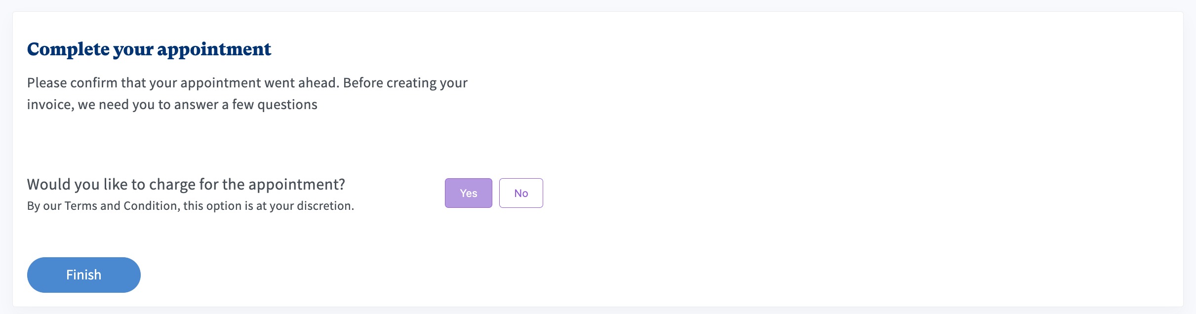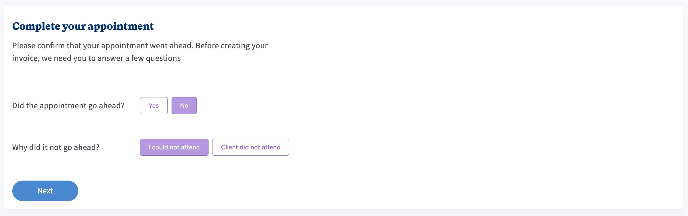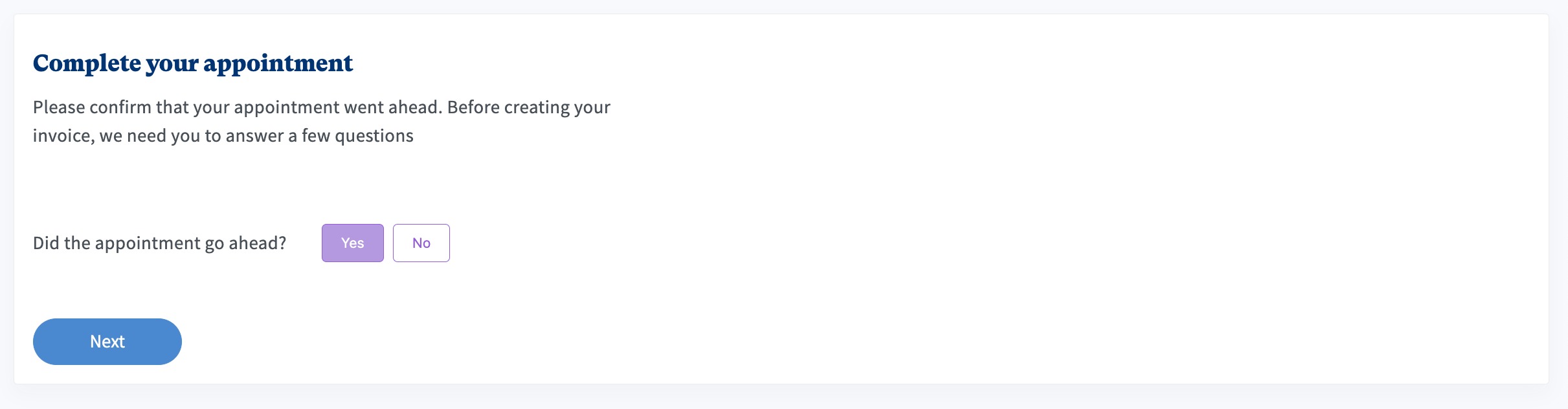Step 4: You’ll be asked to clarify if the session went ahead, if it did then an invoice draft will be shown to you (see the next image for example).