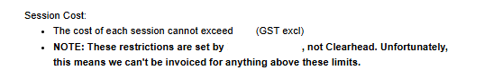 If a person has booked a session with you and a price limit applies you will be notified in the Clearhead EAP - Invoicing Instructions email that is sent to you.