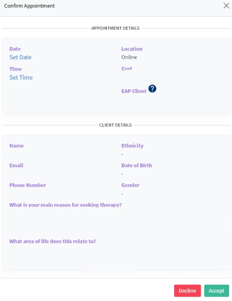 Note: You can also click on the booking to open up more details about the client and the booking.