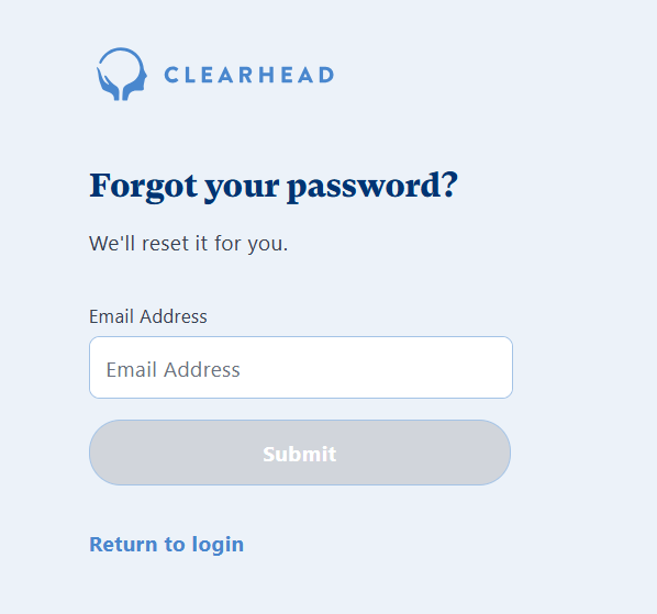 If you aren't able to reset your password, please email therapist-support@myclearhead.com for assistance.